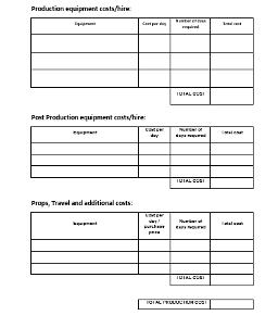 Budget production equipment costs – This ties into the finance side of things with it being an overview of any 3rd party expenditures that is an easy way to calculate budget and work out a possible profit efficiently. As mentioned previously, finance is a vital aspect of pre-production and this documentation keeps it simple.